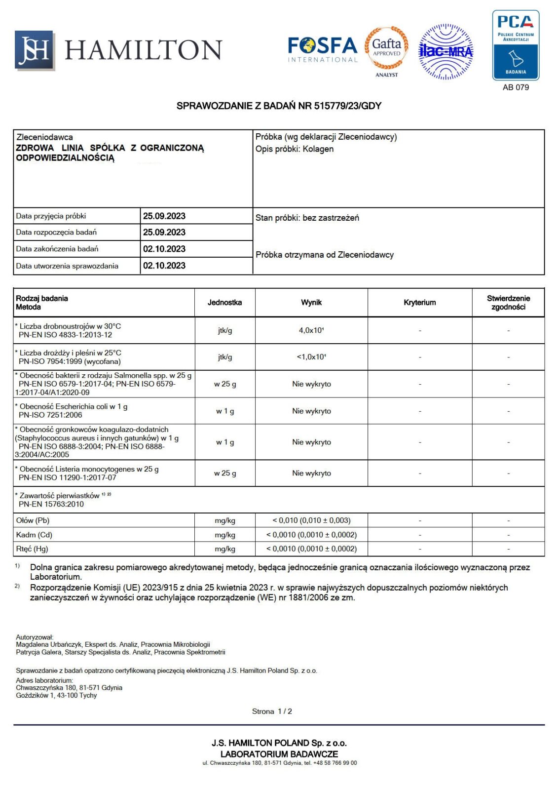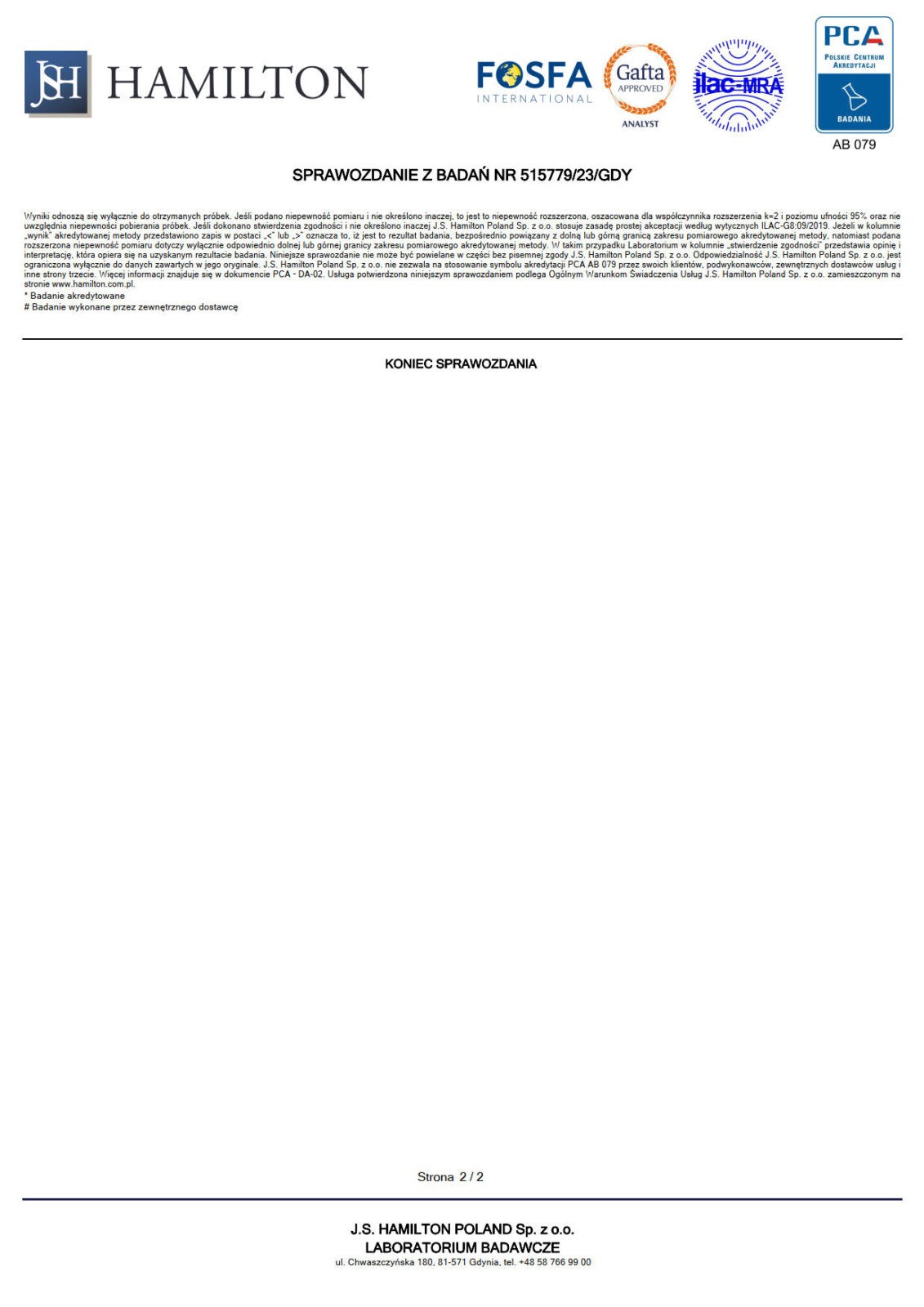 Badania naszych produktów wykonywane są w niezależnym, certyfikowanym laboratorium J.S. Hamilton Poland, które spełnia najwyższe normy jakościowe, potwierdzone min. przez Polskie Centrum Akredytacji oraz członkostwo w organizacjach krajowych i międzynarodowych, takich jak FOSFA oraz GAFTA.