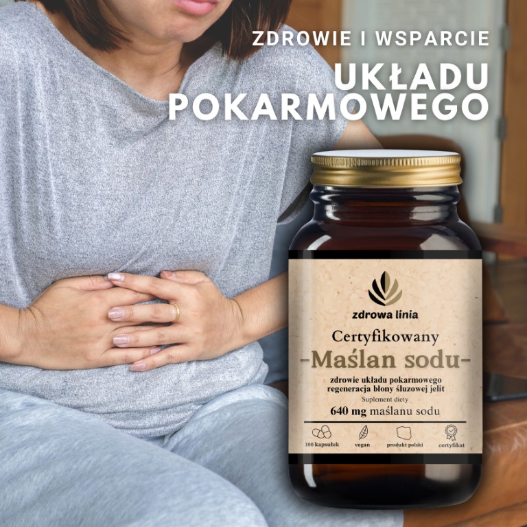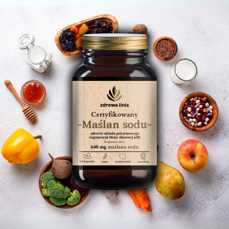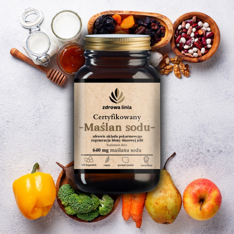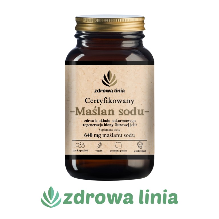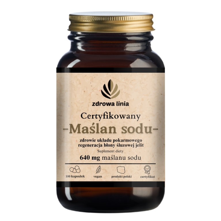 Certyfikowany Maślan sodu od Zdrowej Linii to suplement diety w łatwych do połknięcia kapsułkach. Produkowany w Polsce, posiada certyfikat jakości, co oznacza, że jest produktem wolnym od szkodliwych dla zdrowia substancji i wytwarzanym zgodnie z wysokimi standardami.