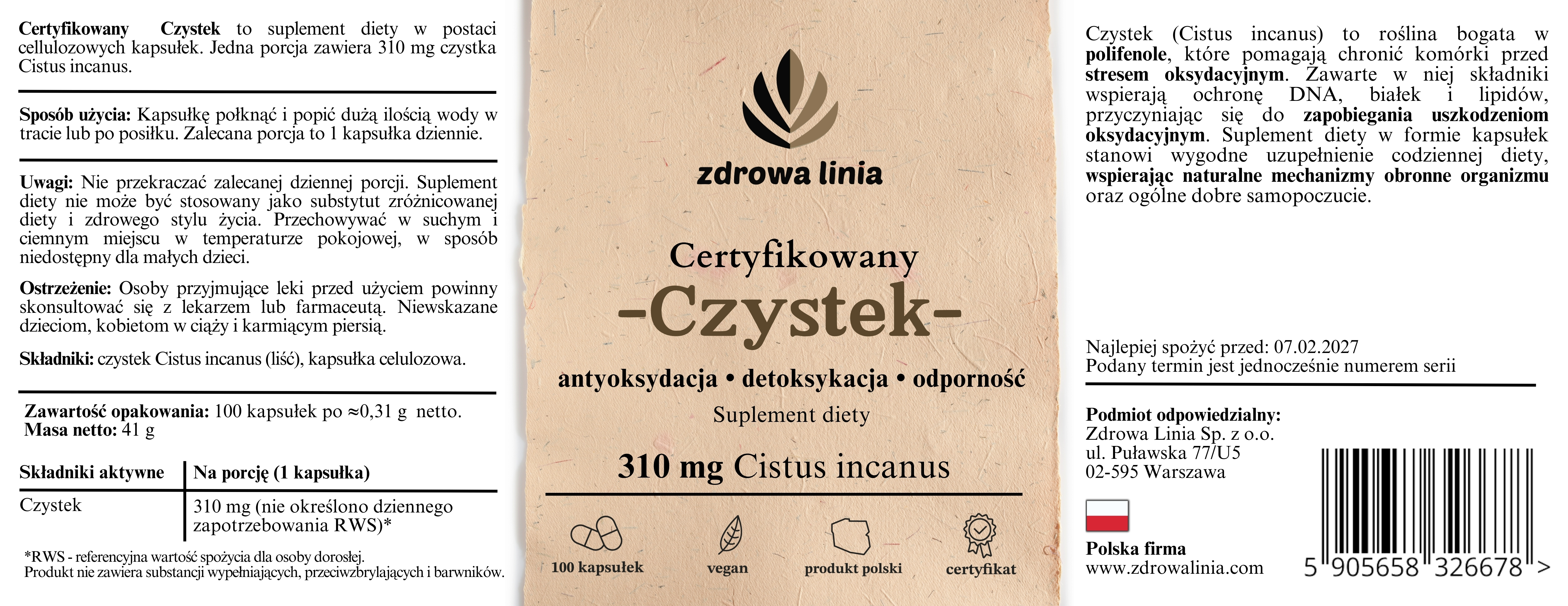✅ Naturalne wsparcie dla Twojego zdrowia – wybierz certyfikowany czystek w czystej formie!
