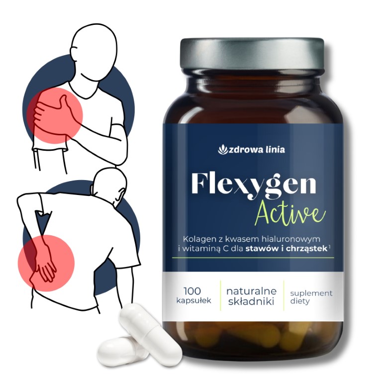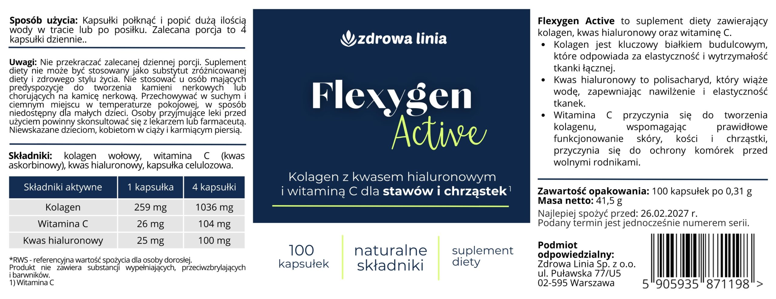 Składniki: kolagen wołowy, witamina C (kwas askorbinowy), kwas hialuronowy, kapsułka celulozowa.