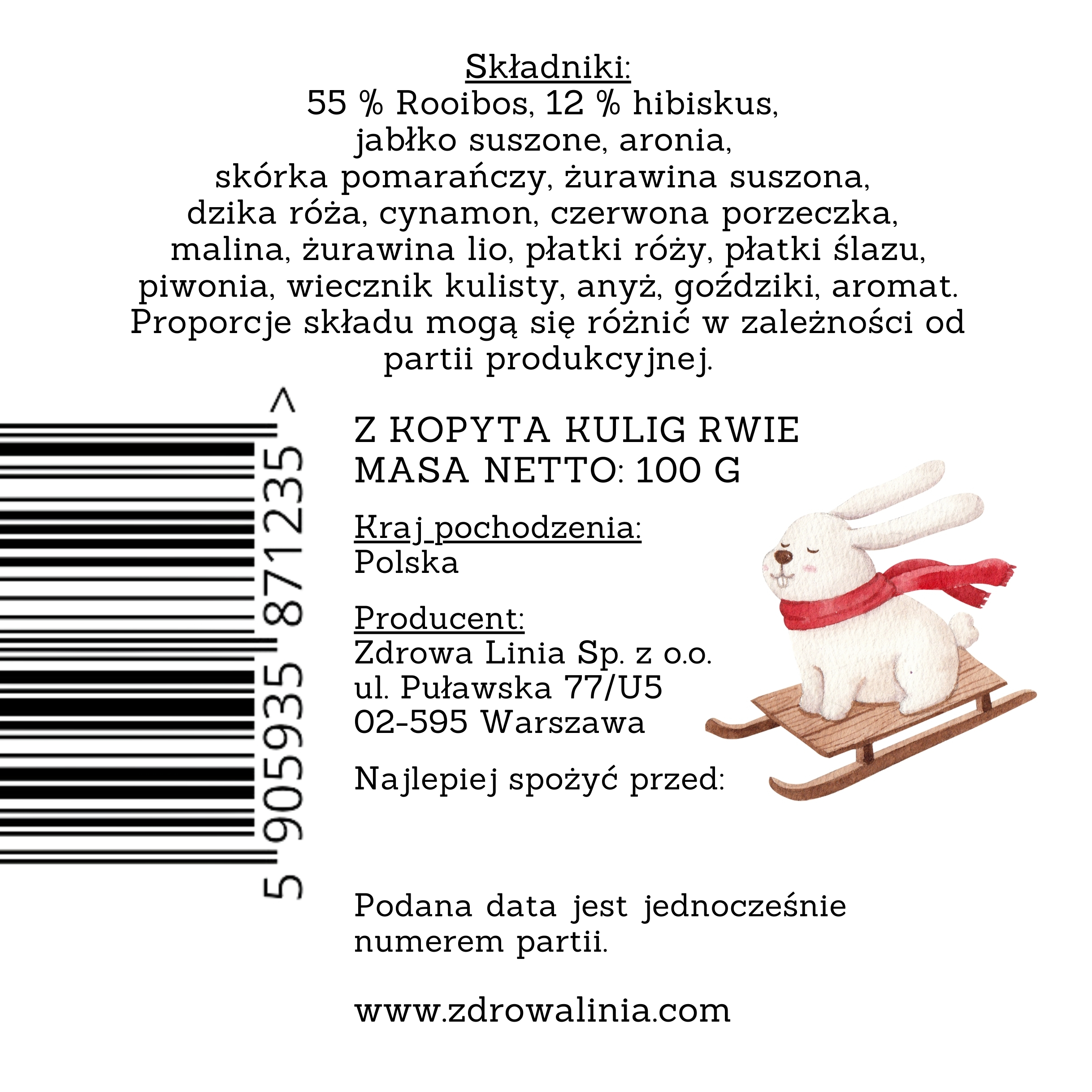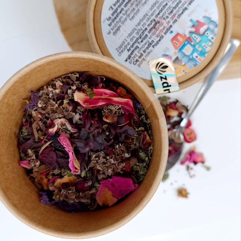Herbata zimowa „Z kopyta kulig rwie” to idealny wybór na stylowy, zdrowy i smakowity upominek świąteczny. Jej wyjątkowa mieszanka aromatycznych owoców, przypraw i kwiatów sprawia, że jest to napój, który wprowadza w zimowy nastrój i umila każdą chwilę. To doskonały sposób na podarowanie bliskim chwili relaksu i ciepła, zwłaszcza w świąteczny czas. Naturalne składniki i wyjątkowy smak czynią ją prezentem, który będzie cieszył przez długie zimowe dni. Herbata „Z kopyta kulig rwie” to nie tylko pyszny napój, ale także doskonała okazja, by rozpieścić siebie i swoich bliskich, dzieląc się odrobiną magii zimy i zdrowego relaksu.