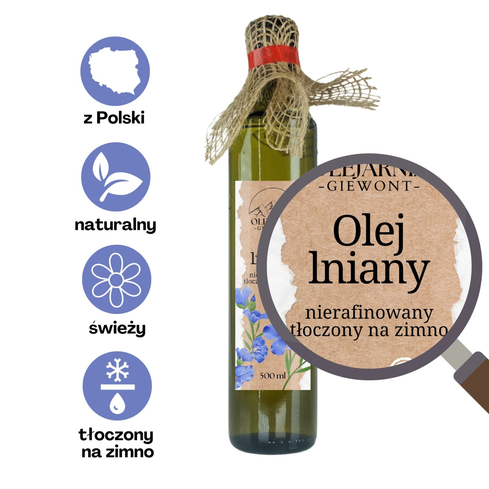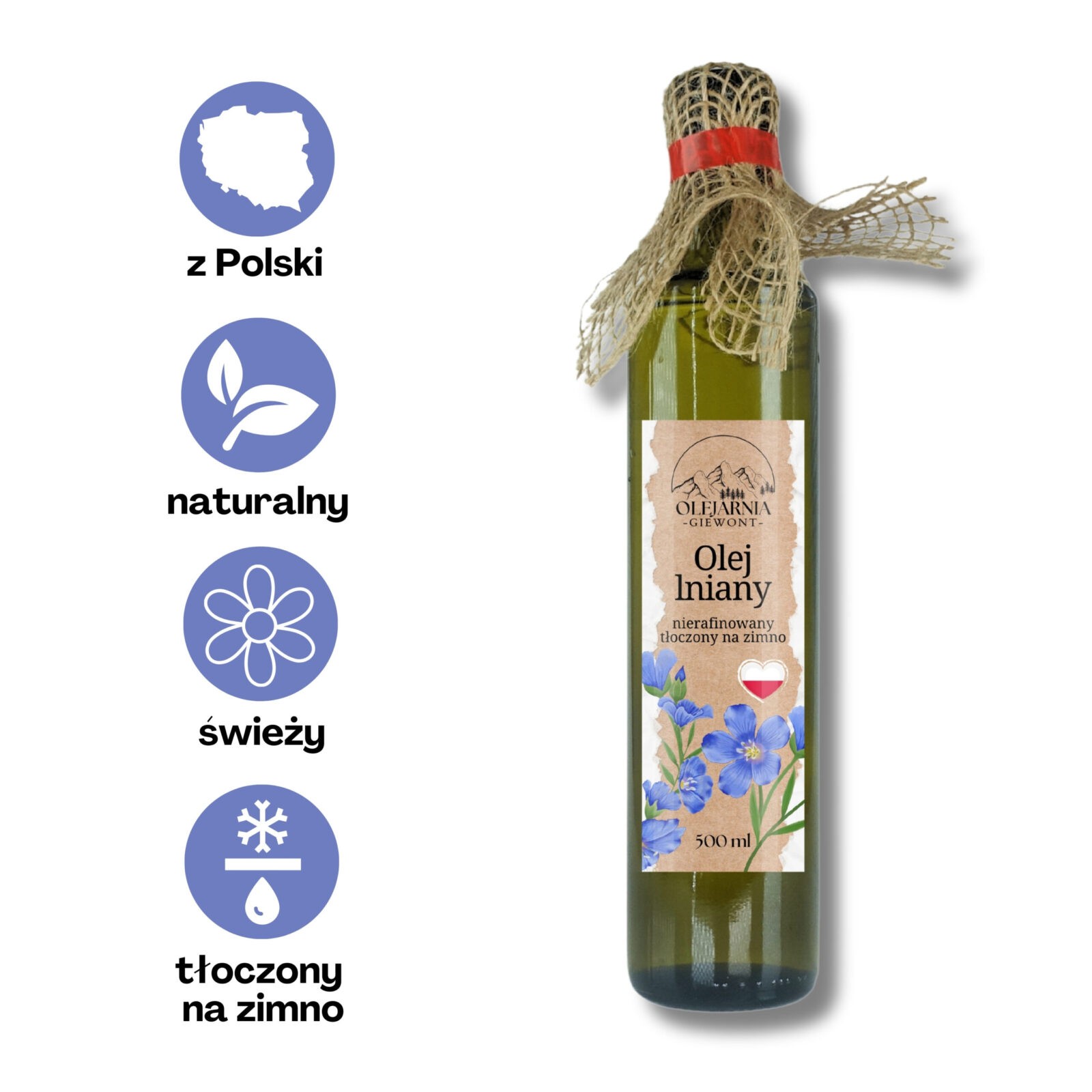 Olej lniany nierafinowany 500 ml Olejarnia Giewont