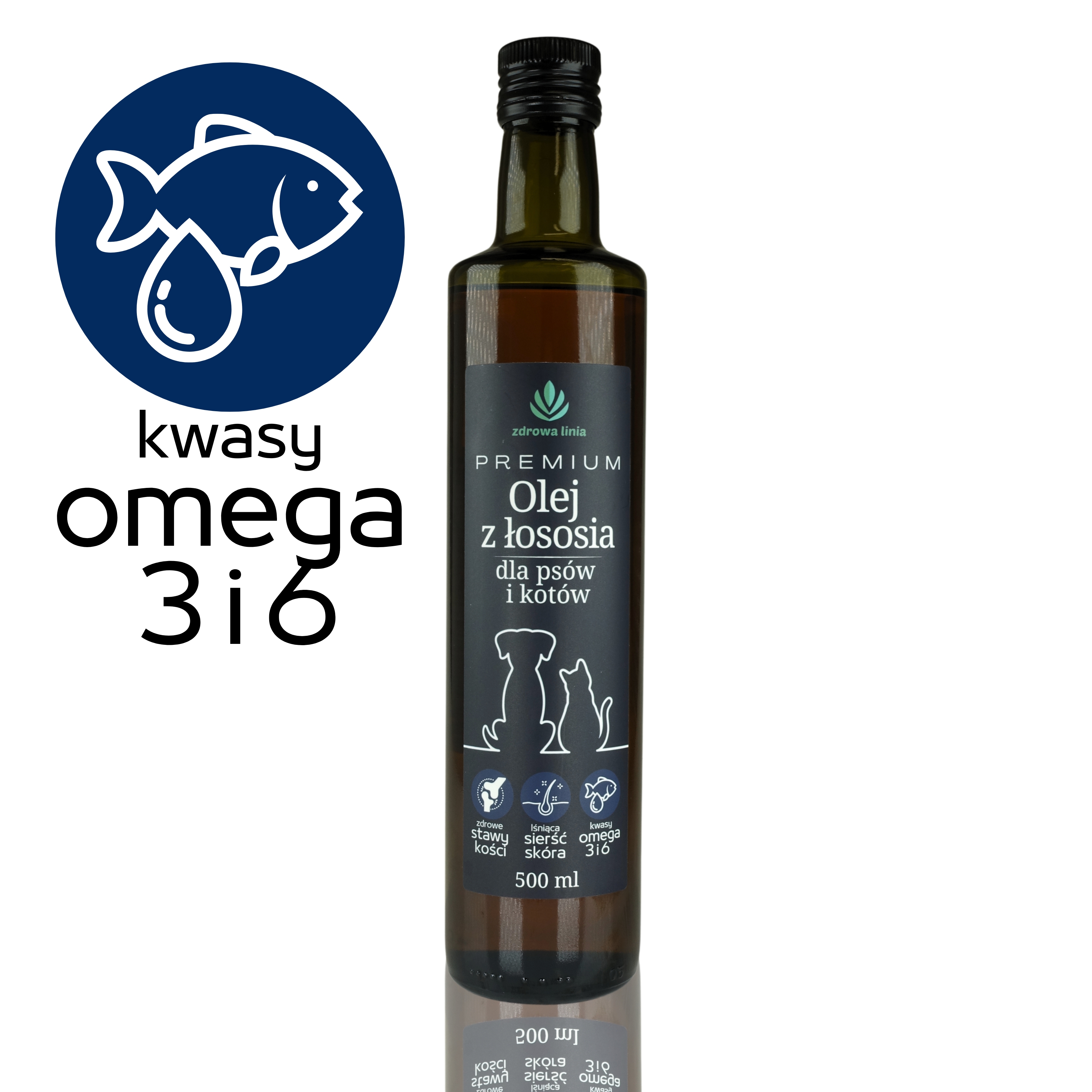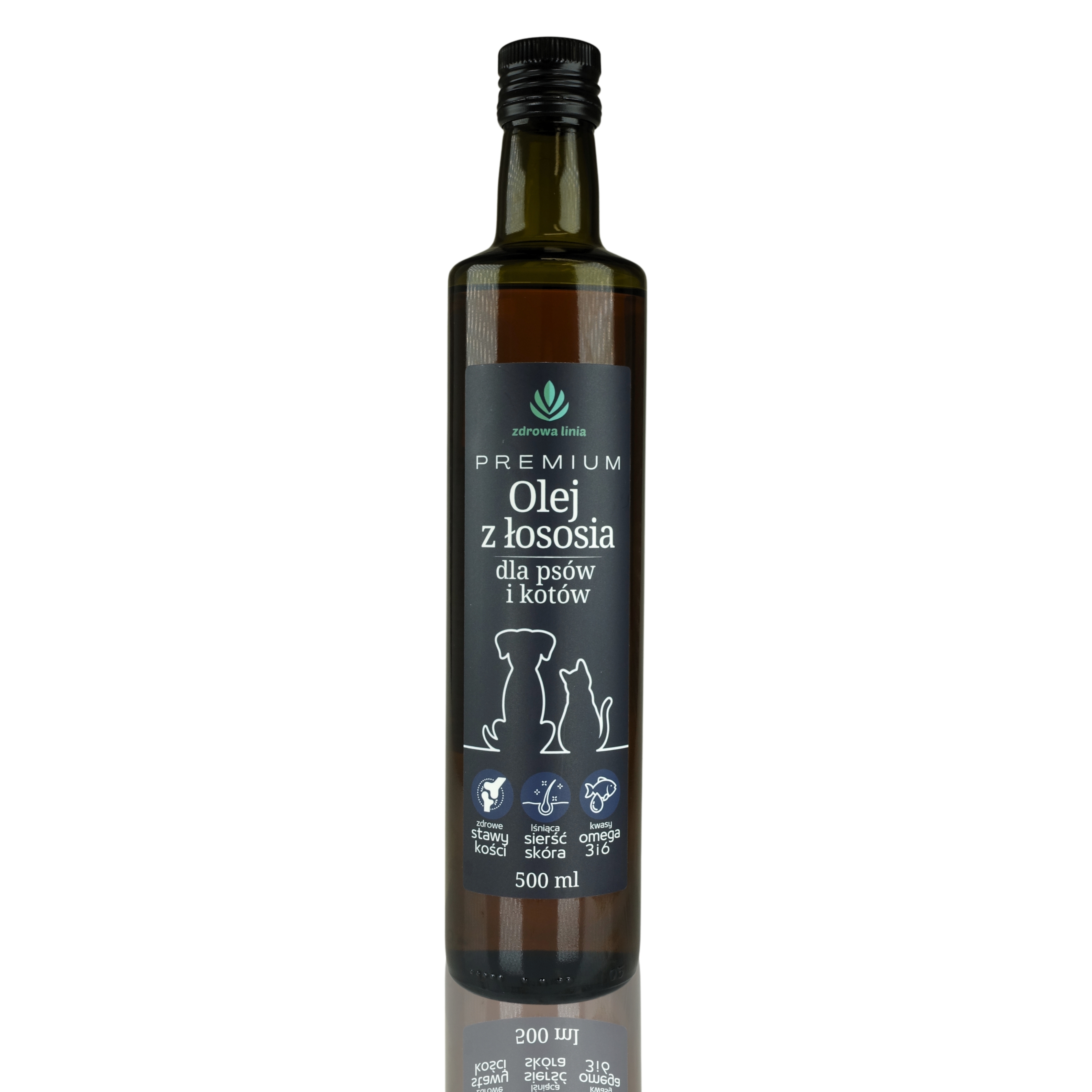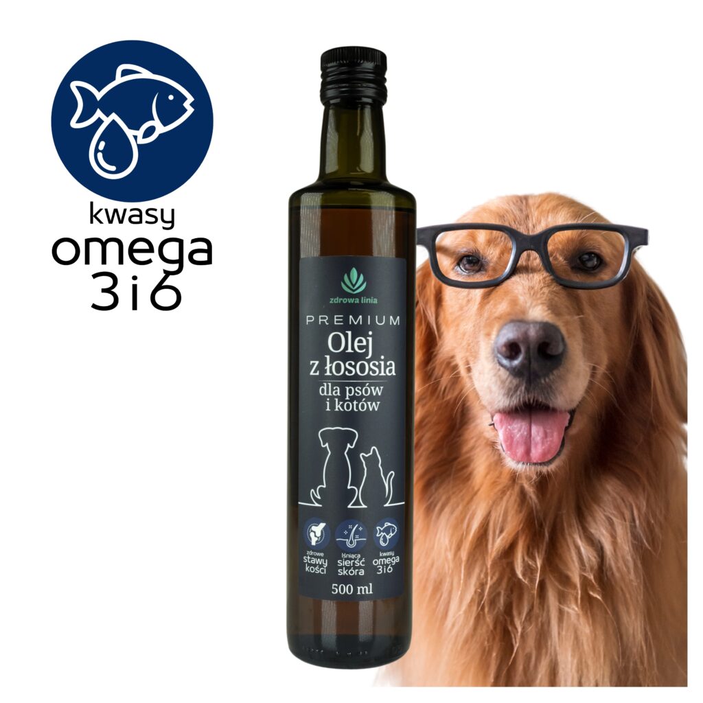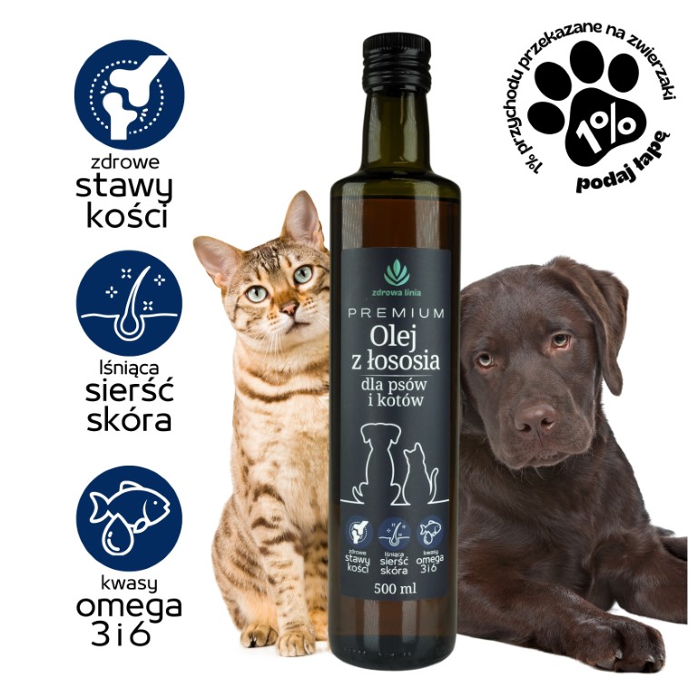 PREMIUM Olej z łososia dla psów i kotów Omega 3 i 6
