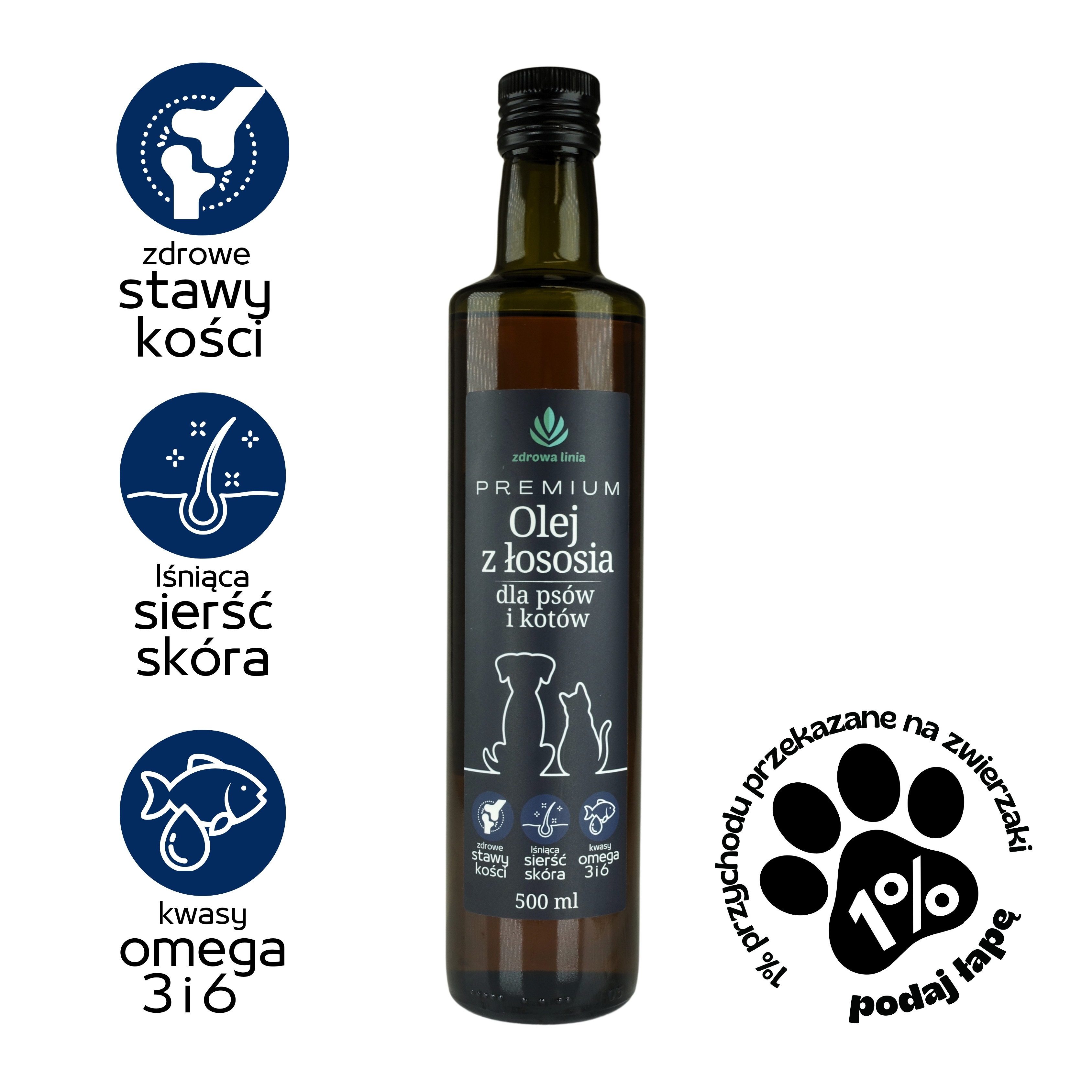Zapewnij swojemu zwierzakowi zdrowe stawy i kości dzięki naszemu Premium Olejowi z Łososia. Pomóż mu cieszyć się aktywnym i pełnym energii życiem przez długie lata!