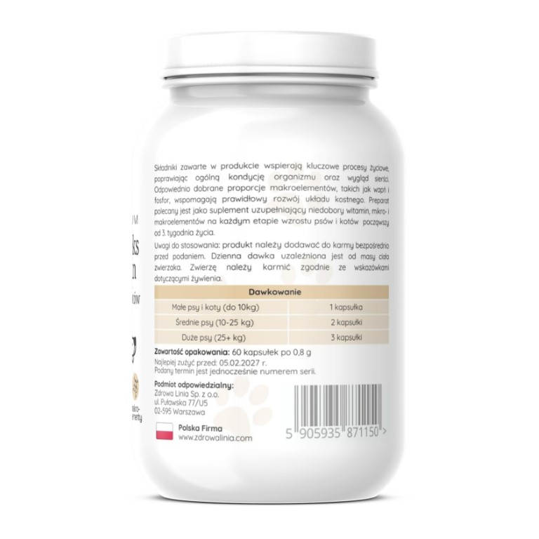 Kompleks Witamin dla psów i kotów to starannie opracowana formuła, która wspiera zdrowie Twojego pupila na każdym etapie życia. Nasze suplementy zawierają niezbędne witaminy i minerały, które pomagają w zachowaniu optymalnej kondycji fizycznej oraz wzmocnieniu układu immunologicznego. Stosowanie tego kompleksu witaminowego przyczynia się do poprawy poziomu energii, zdrowej sierści oraz dobrego samopoczucia. Produkt jest odpowiedni zarówno dla psów, jak i kotów, co czyni go wszechstronnym rozwiązaniem dla wszystkich miłośników zwierząt. Każda porcja została starannie przemyślana, aby zapewnić równowagę składników odżywczych, które są kluczowe dla długiego i zdrowego życia Twojego pupila. Regularne stosowanie Kompleksu Witamin dla psów i kotów pomoże Państwu dbać o zdrowie i witalność Waszych zwierząt domowych.