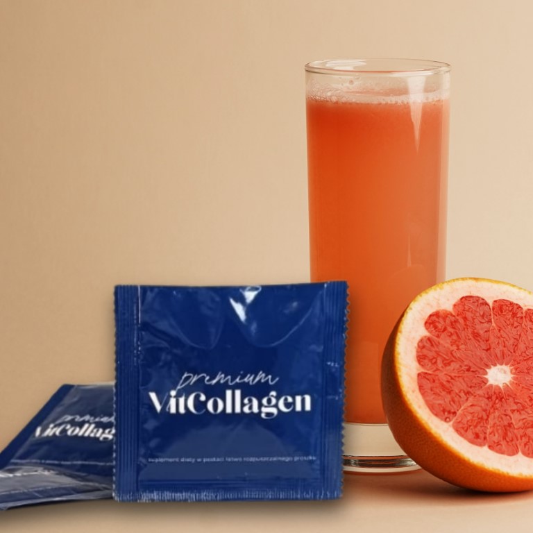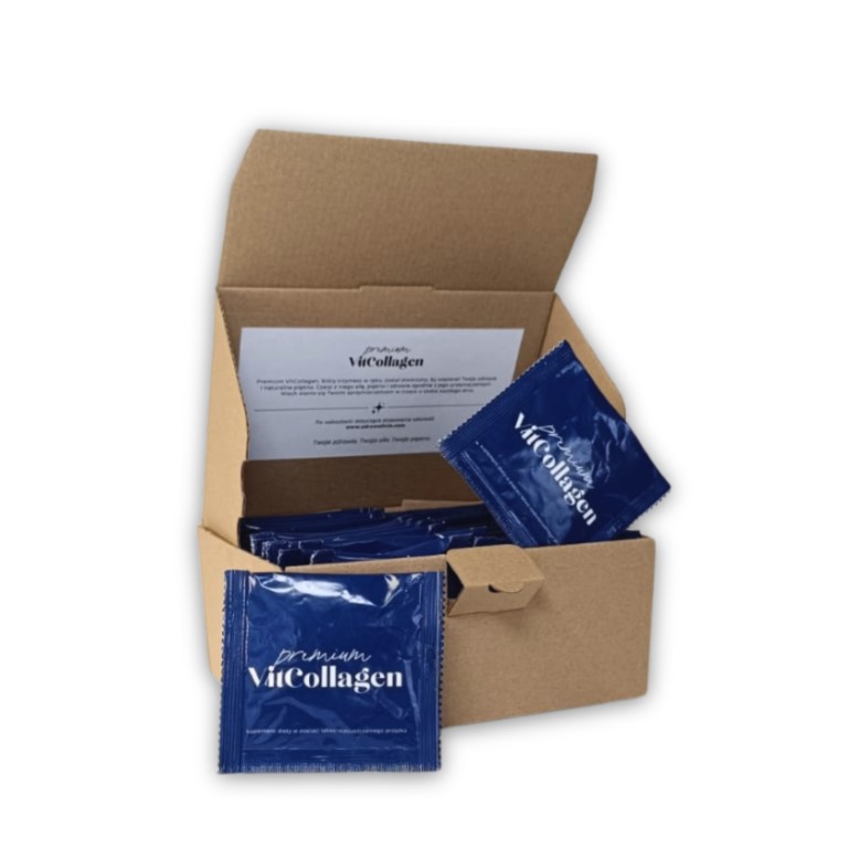 Premium VitCollagen to suplement diety dedykowany osobom dorosłym, który wspiera zdrowie skóry, stawów i kości. Każda saszetka zawiera 5 g czystego kolagenu oraz witaminę C, tworząc doskonałe połączenie, które wspomaga naturalną syntezę kolagenu w organizmie. Premium VitCollagen zapakowany jest w saszetki zawierające dzienną porcję suplementu, co zapewnia wygodę i łatwość w stosowaniu. Można go swobodnie wymieszać z ulubionym napojem, wodą lub innym płynem.