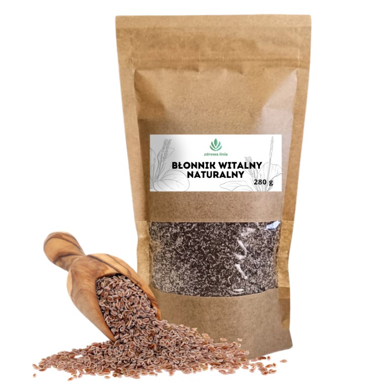 Błonnik Witalny – to naturalny suplement diety w formie sypkiej, który składa się w 80% z nasion babki płesznik (Plantago psyllium) oraz w 20% z łuski babki jajowatej (Plantago ovata). Produkt dostępny jest w wygodnym, strunowym opakowaniu o wadze 280 g, co ułatwia jego przechowywanie.