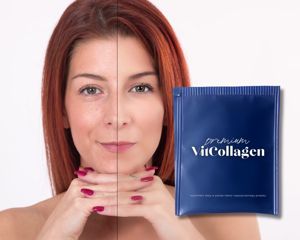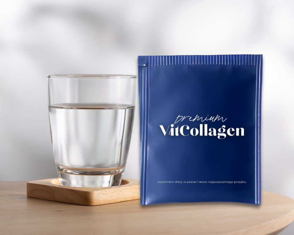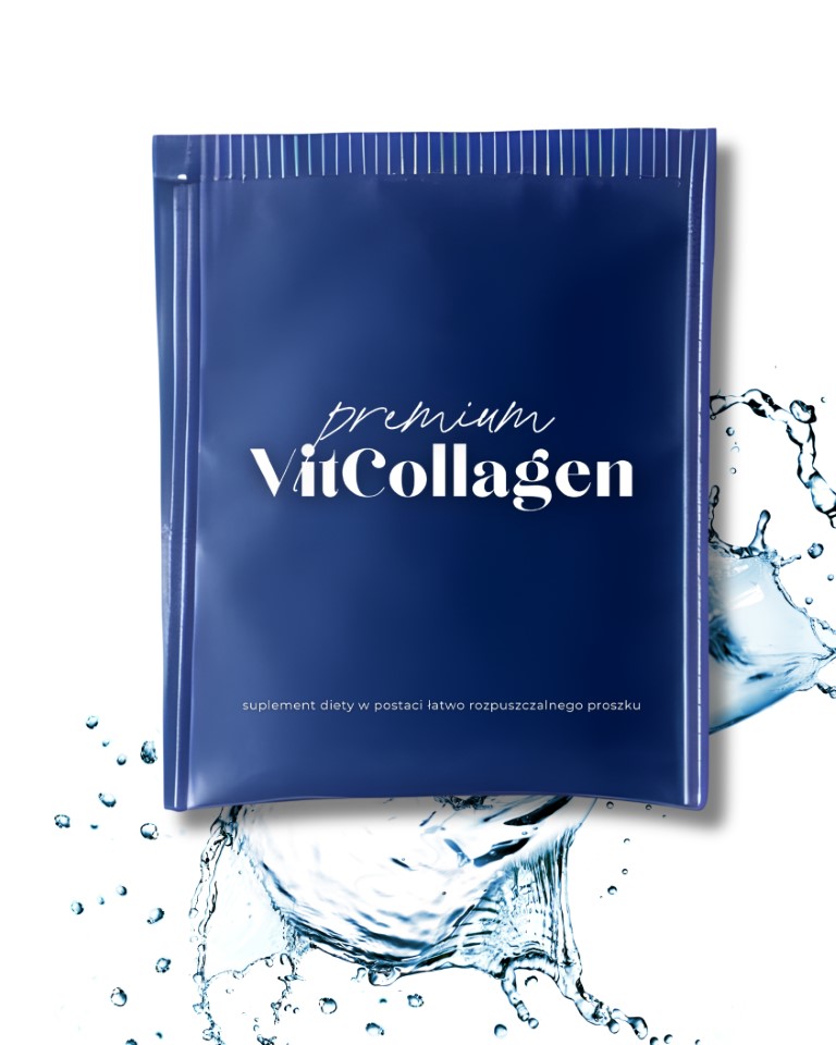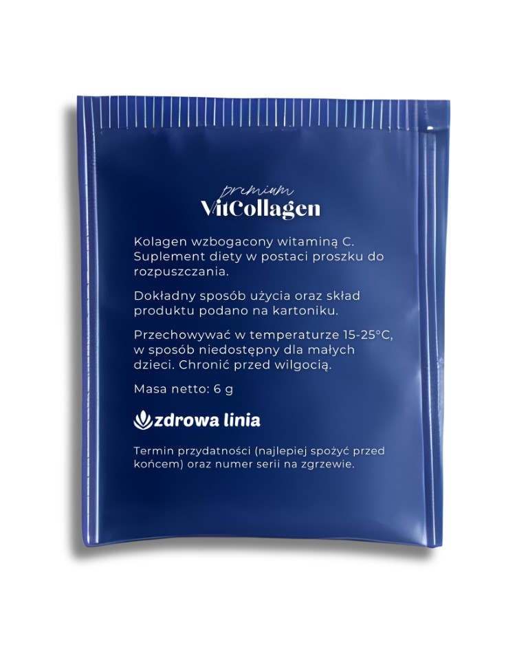 Premium VitCollagen to suplement diety dedykowany osobom dorosłym, który wspiera zdrowie skóry, stawów i kości. Saszetka zawiera 5 g czystego kolagenu oraz witaminę C, tworząc doskonałe połączenie, które wspomaga naturalną syntezę kolagenu w organizmie. Jedna saszetka Premium VitCollagen zawiera dzienną, zalecaną porcję suplementu. Zawartośc saszetki wystarczy wymieszać z ulubionym napojem, wodą lub innym płynem.