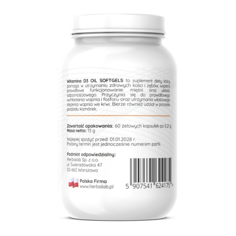 Składniki: olej słonecznikowy, żelatyna, substancja utrzymująca wilgoć: glicerol, woda oczyszczona, cholekalcyferol (witamina D)